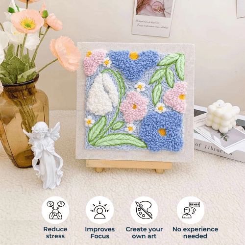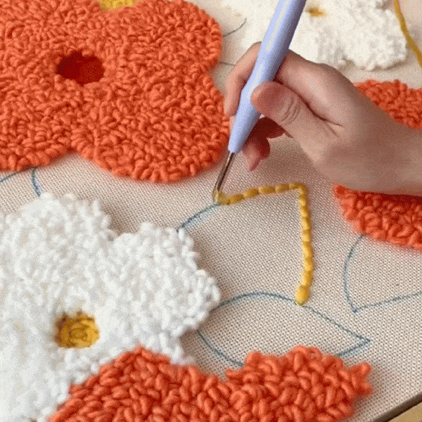 The repetitive motions and satisfying sound of punch needle embroidery make it a perfect way to relax and unwind after a busy day, creating a calming escape from daily stress.