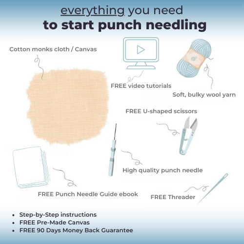Includes high-quality punch needle fabric with pre-printed patterns, vibrant and soft yarns, sturdy embroidery hoops, punch needle, a detailed, step-by-step instruction guide, video tutorials, ebook and other free gifts - all suited so you can learn as soon as possible and enjoy from the first moment.